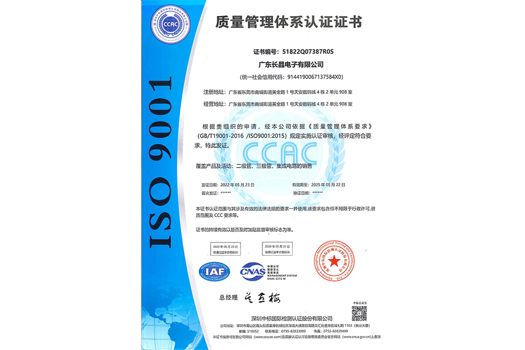 质量管理体系认证证书英文版