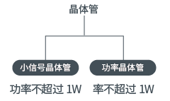 最大集电极电流 (IC(max)) 在500mA以下,最大集电极功率 (divC(max)) 不超过1W的晶体管。相对功率晶体管而得名,一般以树脂封装居多,这是其特点之一。